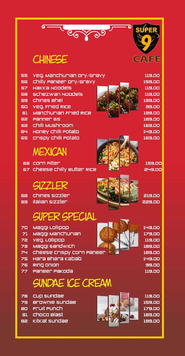 Super 9 Cafe Menu